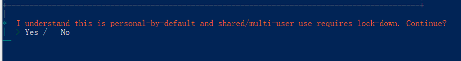 终端会弹出安全提示,告知 OpenClaw 可执行命令、读写文件等操作,存在一定风险,需按键盘左方向←键选择Yes,否则将直接退出配置向导。